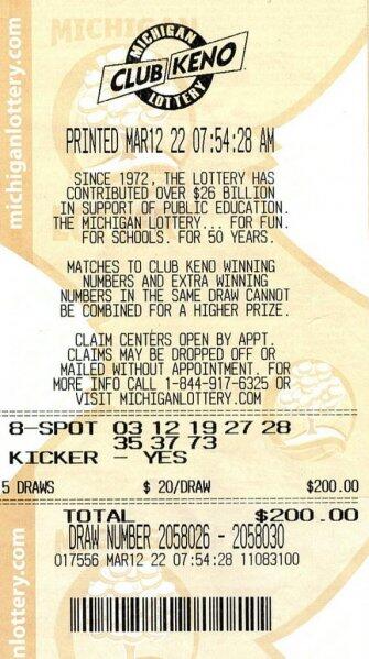 He also played the Kicker option which was 2X for that draw. Michigan is among just a handful of states that has legalized the sale of online lottery games. Michigan lottery Club Keno is a unique feature of the Michigan State lottery whose uniqueness is demonstrated as it can only be found in one State.